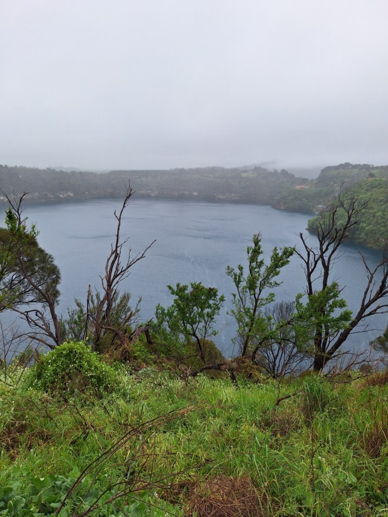 It’s been raining on and off through the night and me and dad have just got out for my morning walk. 5 minutes later it started to rain again so the walk was cut short. Back at the van and the rain comes down for the next SIX hours so not able to do anything. About 2.30pm it started slowing down so we ventured out to the ‘Blue Lake’ driving upto the carpark and then doing the 4kM walk around the crater.