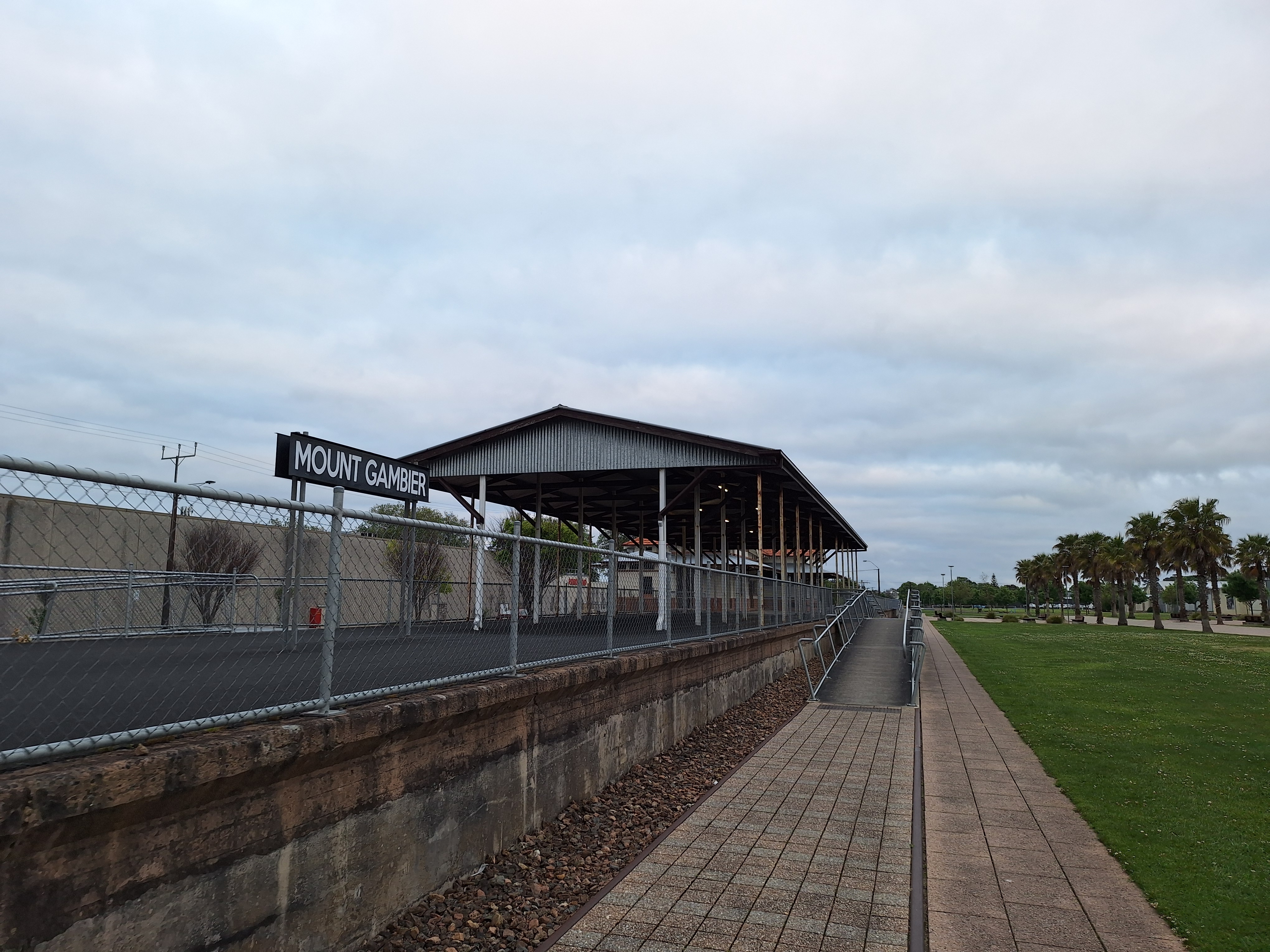 A much brighter day so we have a walk into town, then to the sink hole garden and to ‘The Lakes’ area which has a lookout over all of Mt Gambier. After tea we went for a walk along the old railway track to where the turntable and goods yard are, we walked past the old railway station and the new gardens / play area that has been done.