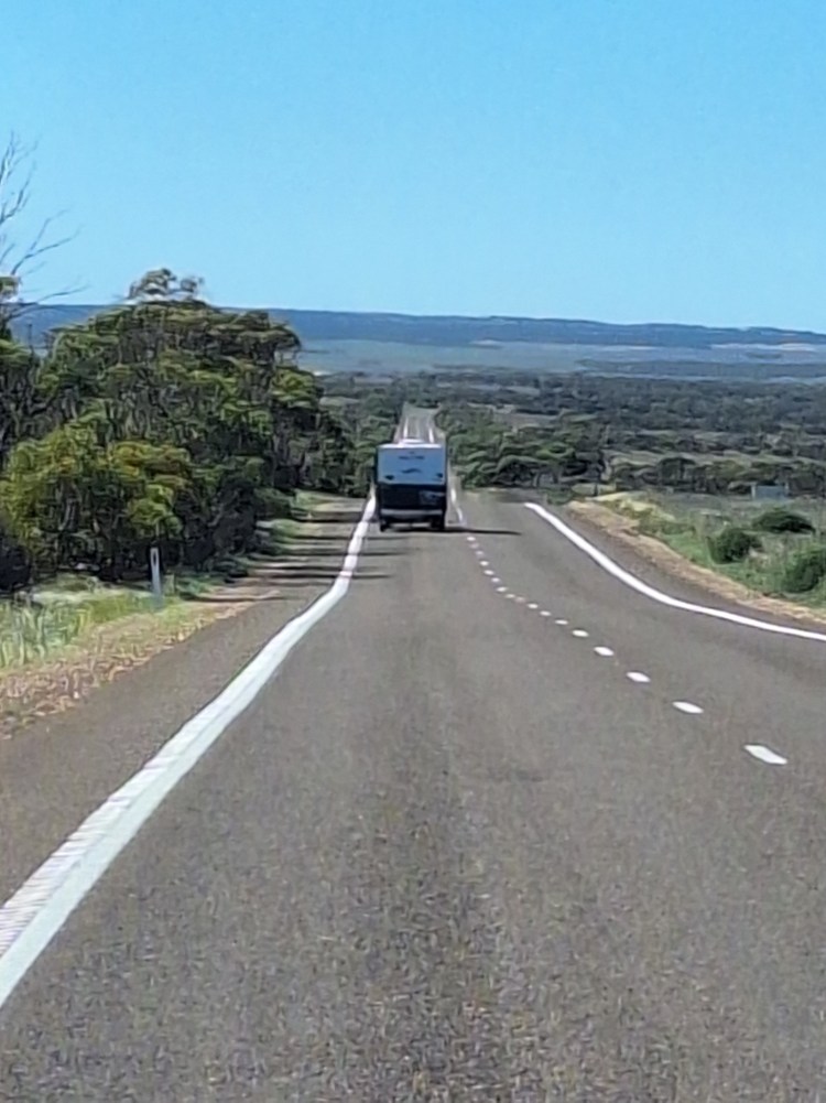 Today is 13th April and we are travelling to Streaky Bay 324km (201m) where we are booked in for three nights at the caravan park, so their will be no travelling and plenty of walks for me, Lucy and Bill on the beach. The weather is another dry sunny day ( down to 7 degrees overnight but up to 24 degrees in the day). We have arrived and while Dad and Barry set up us three dogs are off for a walk with Mum and Christine. Dad has just heard a call of ‘Richo’ from Barry, when he got to their caravan Barry’s left awning arm has broken it’s bracket so he needs help to put it away. This done and phone calls to try and find another one by Barry means a 520km round trip to Port Lincoln tomorrow to get a replacement.