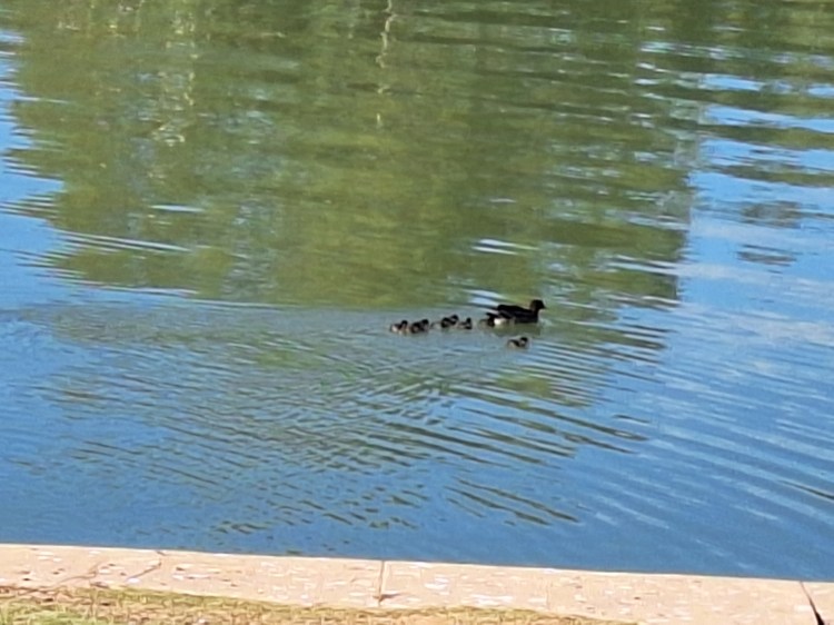 Mamma Duck and her nine chicks