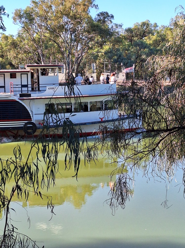 One of the paddle boats that run on the river